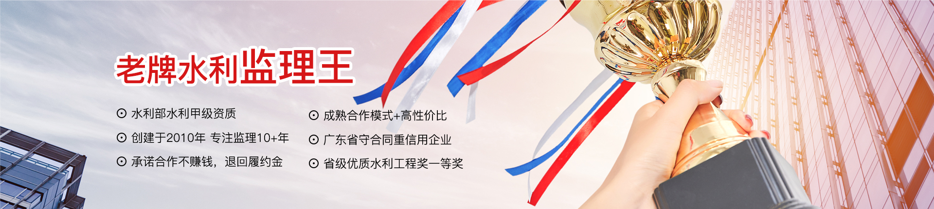 廣東中水工程監(jiān)理有限公司成立于2010年7月,是一家工程監(jiān)理綜合性服務(wù)企業(yè)。公司擁有水利部水利甲級、房屋建筑/市政公用甲級等資質(zhì),被列入廣東省政府采購代理機(jī)構(gòu)指定企業(yè),多次獲得“廣東省守合同重信用企業(yè)”等榮譽。